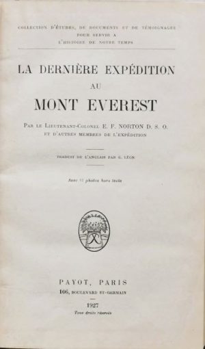 La dernière expédition au mont Everest, E. F. Norton, 1927