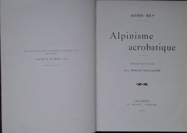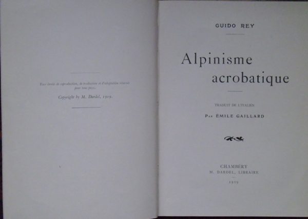 Bel exemplaire décrivant le récit d’expéditions d’alpinisme acrobatique. Guido Rey fut parmi les premiers pionniers de l’alpinisme italien.Il fait connaître les beautés secrètes et splendeurs ignorées de la montagne. Illustré de splendides photographies hors texte. 336 pages. Devrait se trouver dans toutes les bonnes bibliothèque !