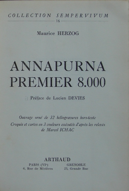 Auteur : Maurice Herzog, préface de Lucien Devies, exemplaire signé par Maurice Herzog,rare