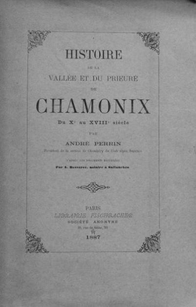 Histoire de la vallée et du prieuré de Chamonix du Xe au XVIIIe siècle par André Perrin, éd.