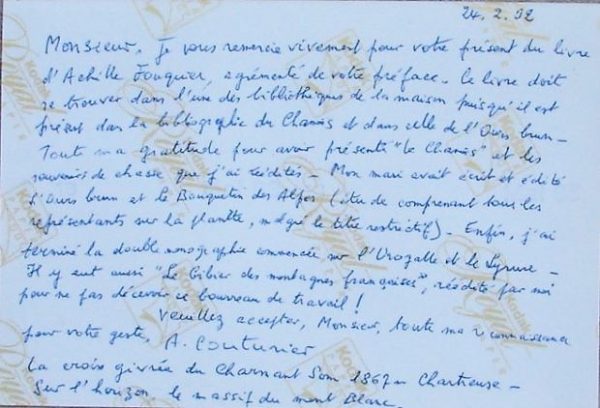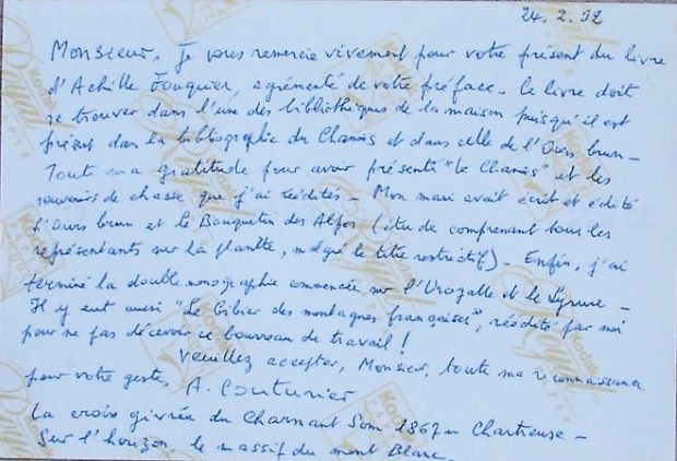 Editeur : Mme Couturier, 1986, exemplaire avec un envoi de Mme Couturier, joint une carte postale écrite par Mme Couturier à l’ancien propriétaire du livre