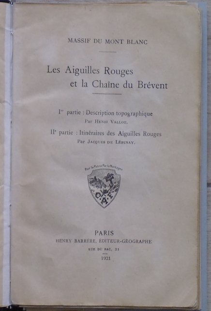 Editeur : Paris, éd. Henry Barrère, 1921, cette monographie est extraite de “La Montagne”, revue du club Alpin Français, 1921