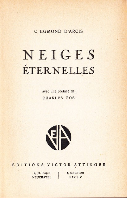 Neiges éternelles par C. Egmond d’Arcis, éd. Attinger, 1945