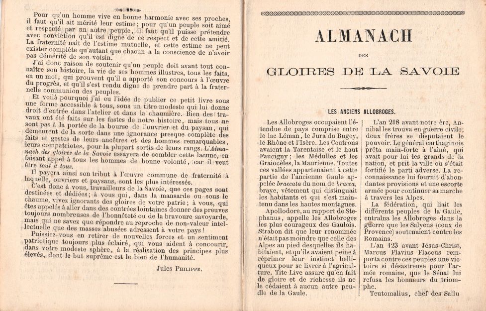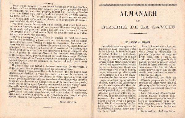 Publié par l’auteur, cet Almanach de 60 pages au-delà du calendrier propose les thématiques suivantes : les anciens allobroges, Généraux Savoyards sous la république et l’empire, ce que c’est que la fierté Savoyards, Ducis et Bonaparte, Les orpailleurs, le Salève, entre autres ( 19 chapitres)