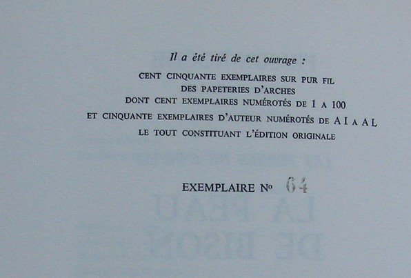 Editeur : Flammarion, Paris, 1971, exemplaire numéroté (64)
